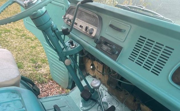 This is unfortunately as close as we’ll get to a photograph of the engine, although we know that it’s a six-cylinder van; they all were. The seller doesn’t specify which six calls the doghouse home, but the standard engine was the 120-horsepower 194 and the 140-horsepower 230 was optional. Since this Sportvan has an automatic, it would have originally had a Powerglide; however, some enterprising soul has replaced the old two speed with a Turbo 350, a nice upgrade.