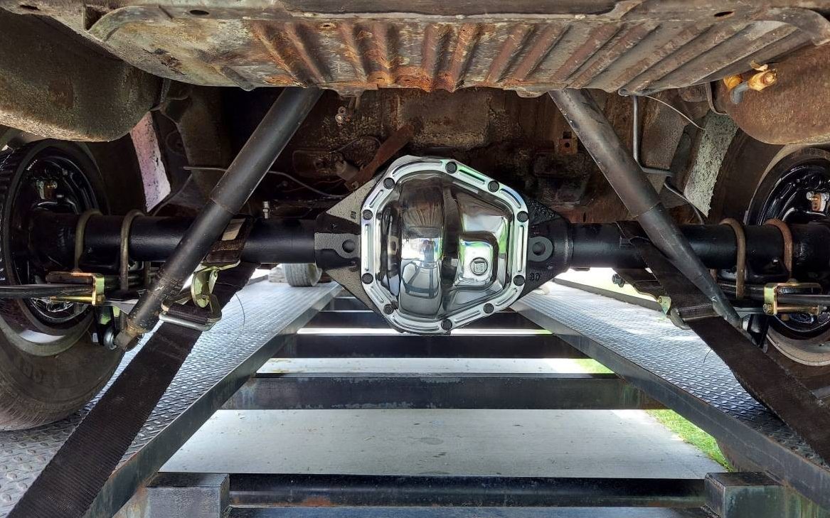 OK, so this one is a roller and originally possessed a 335 gross HP, 383 CI V8 (VIN verified), and a TorqueFlite automatic transmission but both are gone so that opens up possibilities. One could try to keep this RR date correct with a vintage 383, or at this point go for broke with a modern Hemi. I always prefer to see original cars stay original, but once a major change like a missing engine occurs, the keg has been tapped, so why not run with it? Underneath reveals what looks like new leaf springs and a Dana 60 differential so someone was thinking about putting some hubba-hubba under the hood!