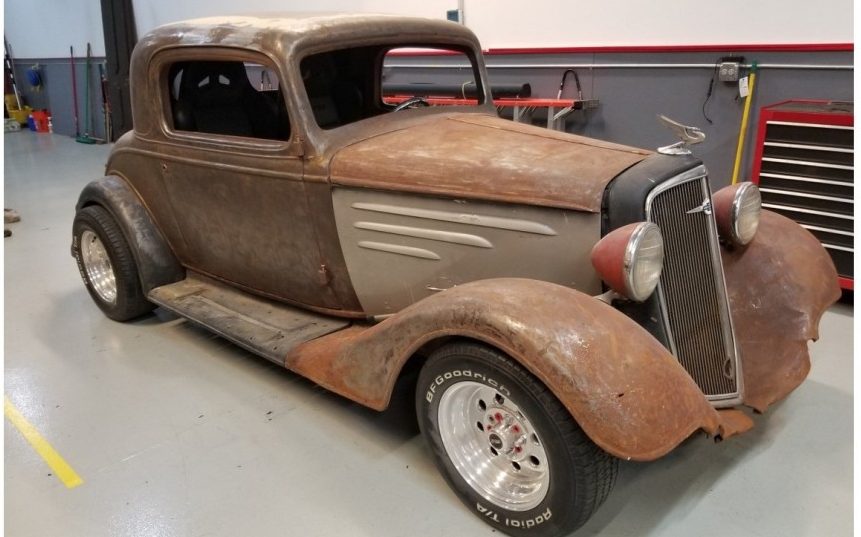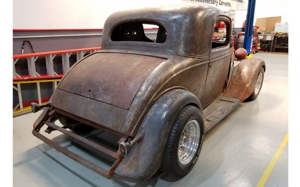 From a squeaky-clean shop in Crystal Lake (presumably Illinois) comes this old-school Chevy hot rod. The 1934 Chevrolet Three-Window Coupe has started a trip down Hot Rod Lane, and needs a new owner to finish the journey. The all-steel body is laid bare with no secrets to hide. Check out more pictures and the owner’s description here on BarnFinds classifieds. A fresh Chevy small-block V8 with towering induction parts rests on custom motor mounts. Much of the engineering is done, but nearly everything cosmetic can be envisioned to suit the buyer’s fancy. For $24,000 you get everything shown here plus a collection of related parts. If another drive train trips your trigger, you can get the car minus engine and transmission for $20,000.
