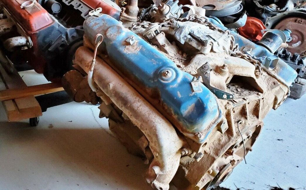 The interior did not benefit from the clean-up applied to the outside, but at least most of what we see here seems to relate to the car itself. The white bucket seat differs from the C6F green interior noted on the fender tag. Thanks to mymopar.com for some details. The seller includes “tons” of parts with the car, though buyers may wish to confirm that their weight exceeds 4000 lb.