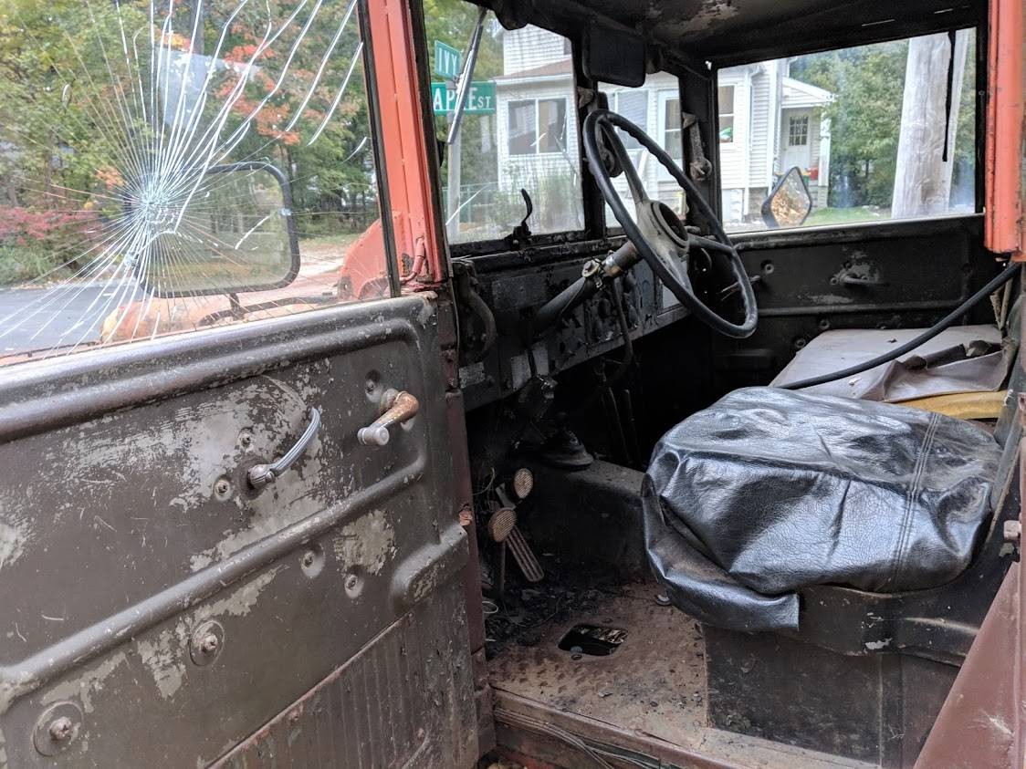However, regardless of the engine fire, it’s clear this M37 has been rough for a while. The smashed glass, worn interior, rough paint – it would be a project regardless of whether a fuel line let go. But that’s OK, considering the most attractive aspect of these wartime rigs (to me, anyway) is how they were effectively identical to what was used on the battlefield.