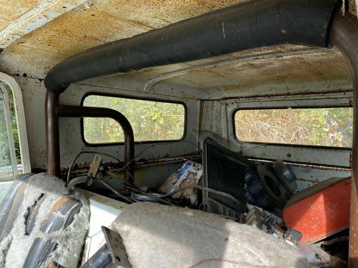 This International Scout 80 has a roll bar and the original frame is still intact. The seller states that the frame was modified in order to add a Dana 44 rear end. The Scout looks like it has a lift kit added or something. The glass looks intact and the whole rig looks like it needs a bath in bleach and to sit in the sun for a while. Overall, the pictures do not indicate any rot or significant rust in the body panels. However, the front end looks like it has been kissed by a trailer and rock outcropping at some point.