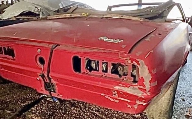 Included with the body are numerous components that were removed and saved. The listing mentions seating, bumpers, heater components, a full dash, steering column, and replacement sheet metal accompanying the car. The convertible structure remains intact, and the project appears to have been disassembled with the intention of rebuilding rather than parting out.