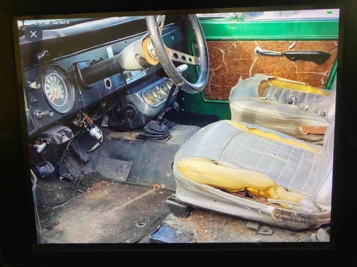 Potential buyers should consider this Bronco an unknown quantity. The existing Green paint isn’t original, and it is peeling in places to expose the factory Code H Sahara Beige. The buyer will undoubtedly strip the panels to bare metal as part of a high-end restoration, which may expose any existing rust issues or prior repairs. There are few visible externally, but the seller admits there are holes in the floors. It would be worth checking the front inner wheel wells and the pillars because all can succumb to problems. The vehicle rolls on larger wheels and tires, but the previous owner didn’t cut the fenders to accommodate them. One area they did cut was the roof, filling the hole with an aftermarket glass sunroof. Reversing that change is possible, an option I would consider as part of a faithful restoration. The glass looks excellent for its age, as do most trim pieces. One practical feature is the front PTO-driven factory winch. It are not seen every day and adds to the potential value of this classic.
