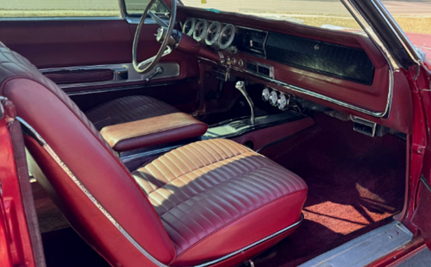 Except for rust in one small area and a dent, the seller says the body on this Charger is solid. The dashboard is the roughest part of the interior, and the upholstery is original and in need of some attention. The Dodge Rebellion (remember the campaign?) started around the time the Charger was introduced, so the car was prominently featured in Mopar advertising.