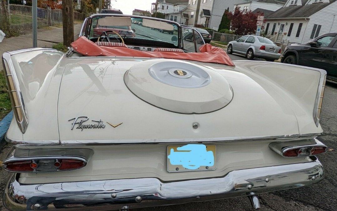 And now for a bit of Virgil Exner’s best, a 1959 Plymouth Sport Fury convertible. I say that with some sincerity as this Fury, a convertible no less, and in spite of its F/A-18 tailfins is, to my eyes, one of ChryCo’s better-balanced designs to surfaced during that era. Looking for a ’59 Chevy or Ford, no problem they turn up all of the time, and occasionally in convertible form. A ’59 Plymouth Fury convertible, that’s an entirely different kettle of fish. This notable drop-top is located in Paterson, New Jersey and is available, here on eBay for a current bid of $28,150, reserve not yet met. Thanks to Larry D for this rare find!