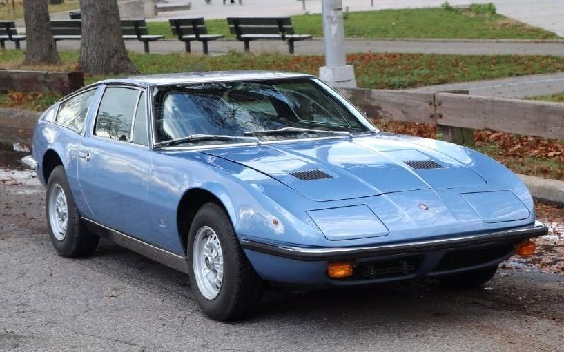 The earliest Indy’s engine was a 4.2 liter V8 worth about 260 hp; by 1971, the 4.7 and 4.9 liter versions were also available. Horsepower peaked at about 320 and top speed was 170 mph. The Indy could be ordered with a five-speed ZF manual or a three-speed Borg-Warner automatic. The suspension was rudimentary compared to its competition, but the car was designed less for the twisty bits than for freeway motoring. This car’s odometer reads 55,000 miles.