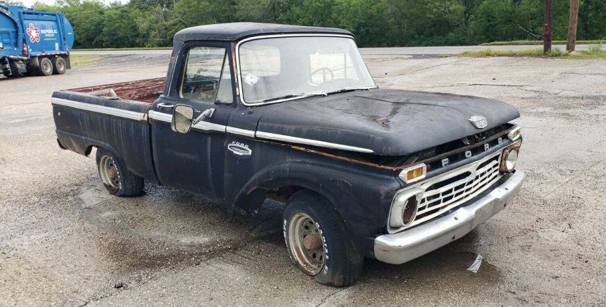 The Ford F-series of pick-up trucks have been hugely successful over the years, including the smallest version, the F-100, which was built between 1948-83. They were great workhorses that attract collector attention today. This 1966 F-100 has had more than its share of hard knocks over the years and the question becomes is there enough left here to work with. It’s offered in Boutte, Louisiana and available here on eBay for a flat $1,000.