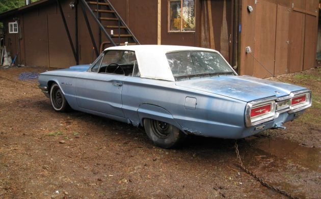Over the years, certain generations of the Ford Thunderbird have developed nicknames. The 2-seat 1955-57 T-Birds are sometimes called “Baby Bird”, the 1958-60s were “Square Birds”, the 1961-63 models called “Bullet Birds”, and the 1964-66 were the “Flair Birds”. The seller’s car is a ’64 edition, but it doesn’t have a lot of flair anymore. The engine is seized, and the 35-year-old repaint is past its prime. Located in Parksville, British Columbia, this rusty project is available here on craigslist for $2,000 (USD?). Yet another great tip from Curvette!