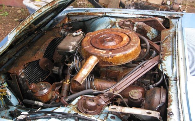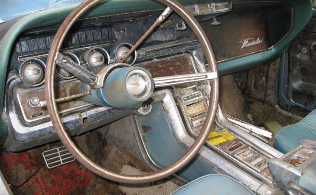 The seller’s car should have a 390 cubic inch V8 (rated at 300 hp), paired with a 3-speed Cruise-O-Matic transmission. We’re told the former has water in it and has seized up, even though the odometer reading may only be 46,000 miles (maybe 146,000?). After the Ford was repainted about 35 years ago, it was parked in a carport, and things started to go downhill. The headliner and vinyl top were also new, but are they salvageable now?
