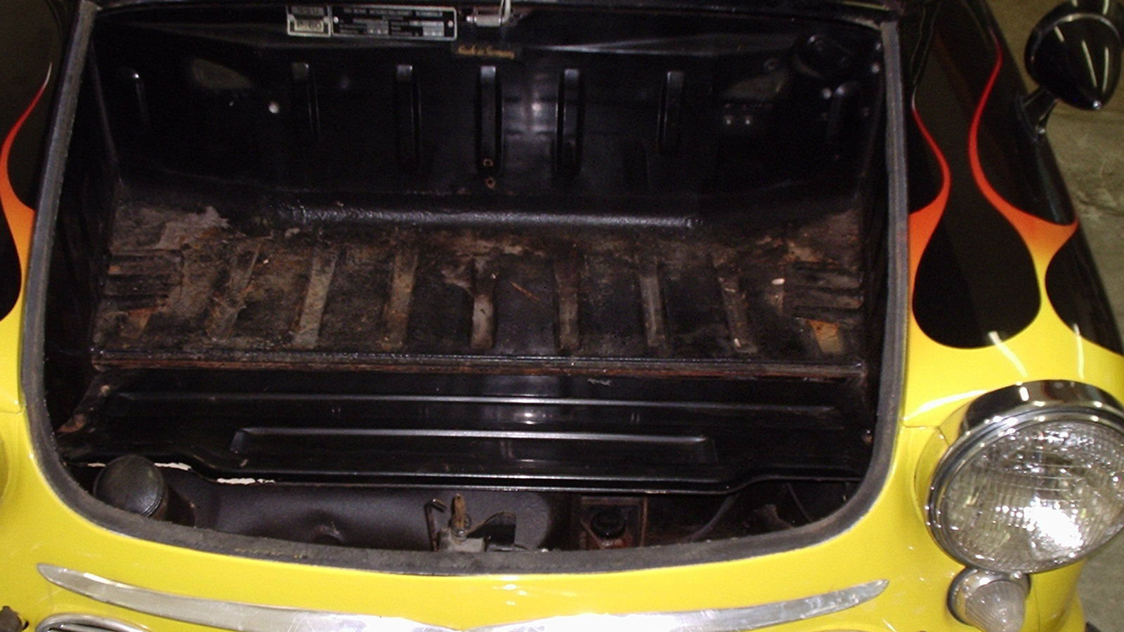 This is what passed for a “frunk” for the Prinz. In addition to this front space, there was also a small luggage area behind the rear seats.