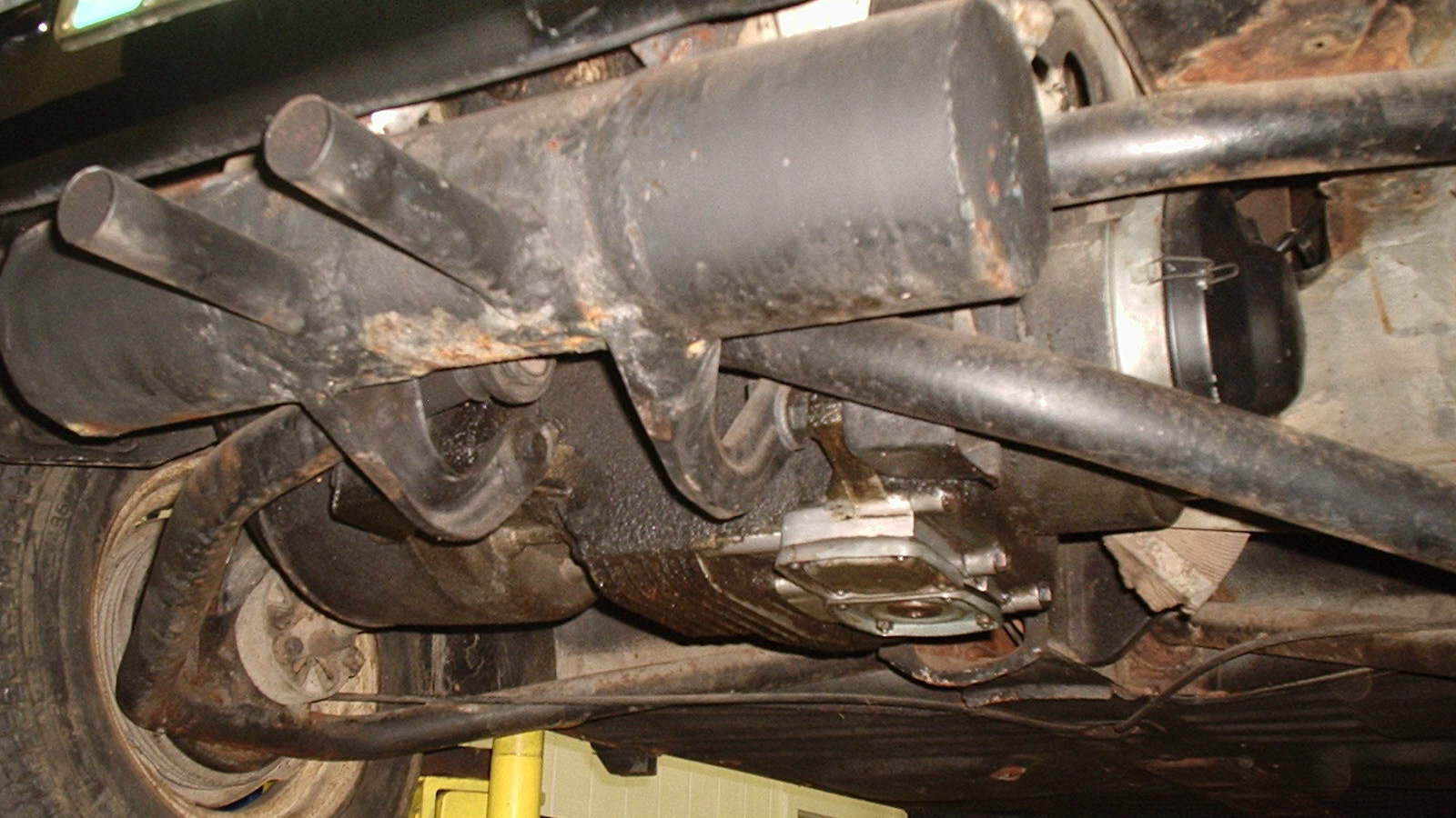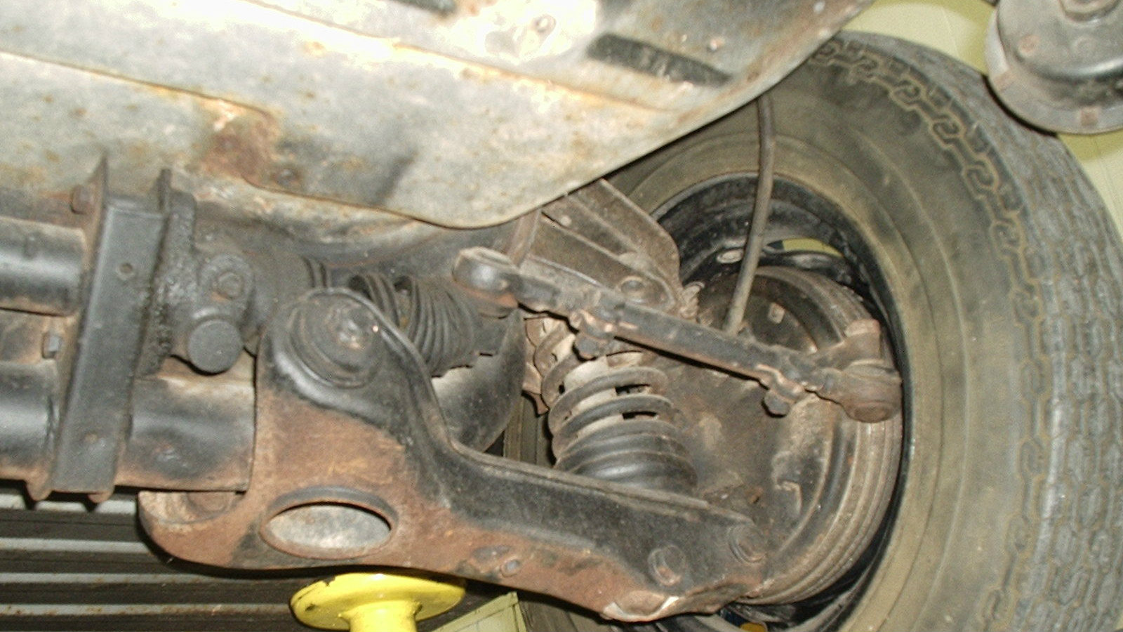 I’m not a fan of black rattle can spray underneath. Especially when they can’t bother to spray all of the items. You can also see the torn steering rack boot. That might be a fun part to find.