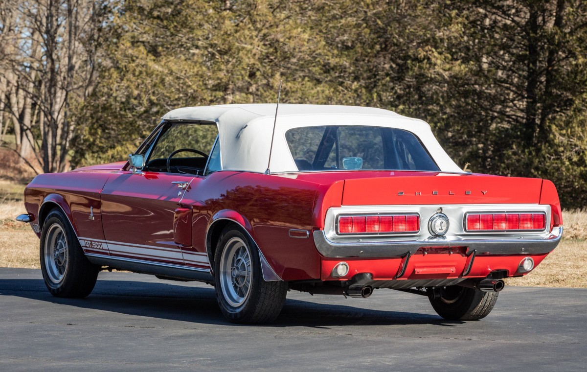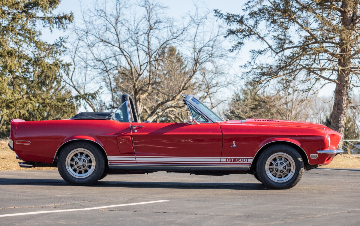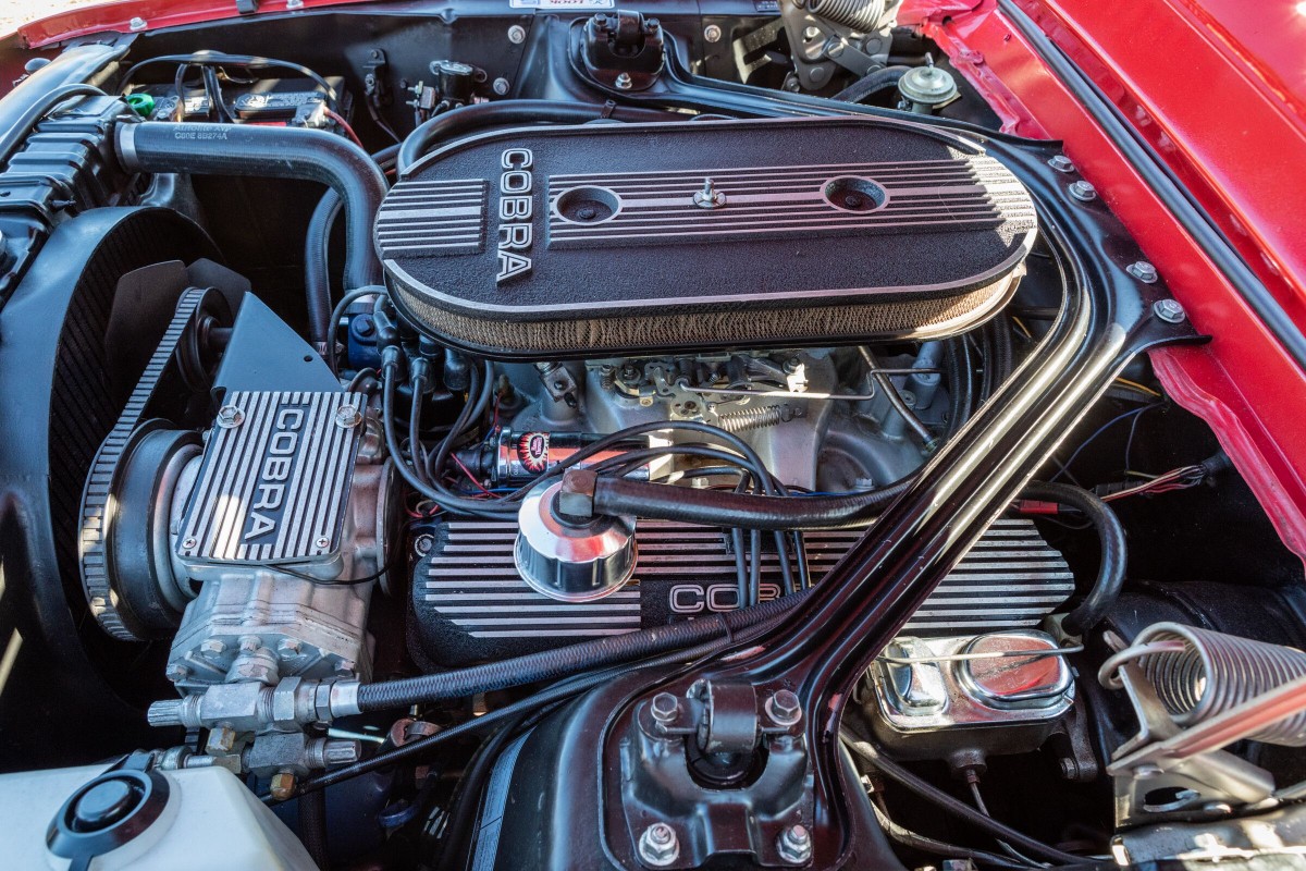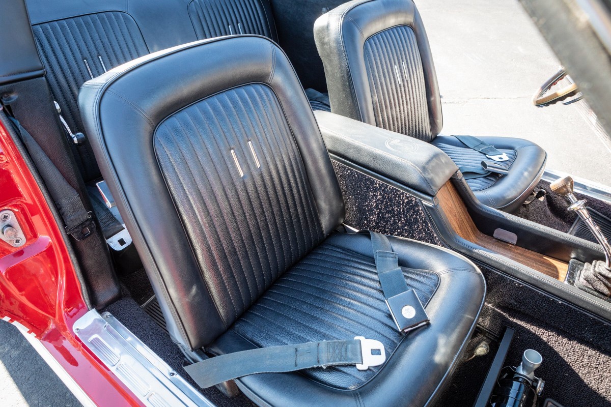 The black interior shows very nicely and frankly looks immaculate surrounded by the Candy Apple Red exterior paint. Crabbe ordered the car with a number of options including air conditioning, power steering, power brakes, shoulder harnesses, AM radio, tinted glass and a tilt-a-way steering column. There were only 402 convertibles produced in 1968 and this one comes with a Marti report. The car has the Shelby serial number 2975.