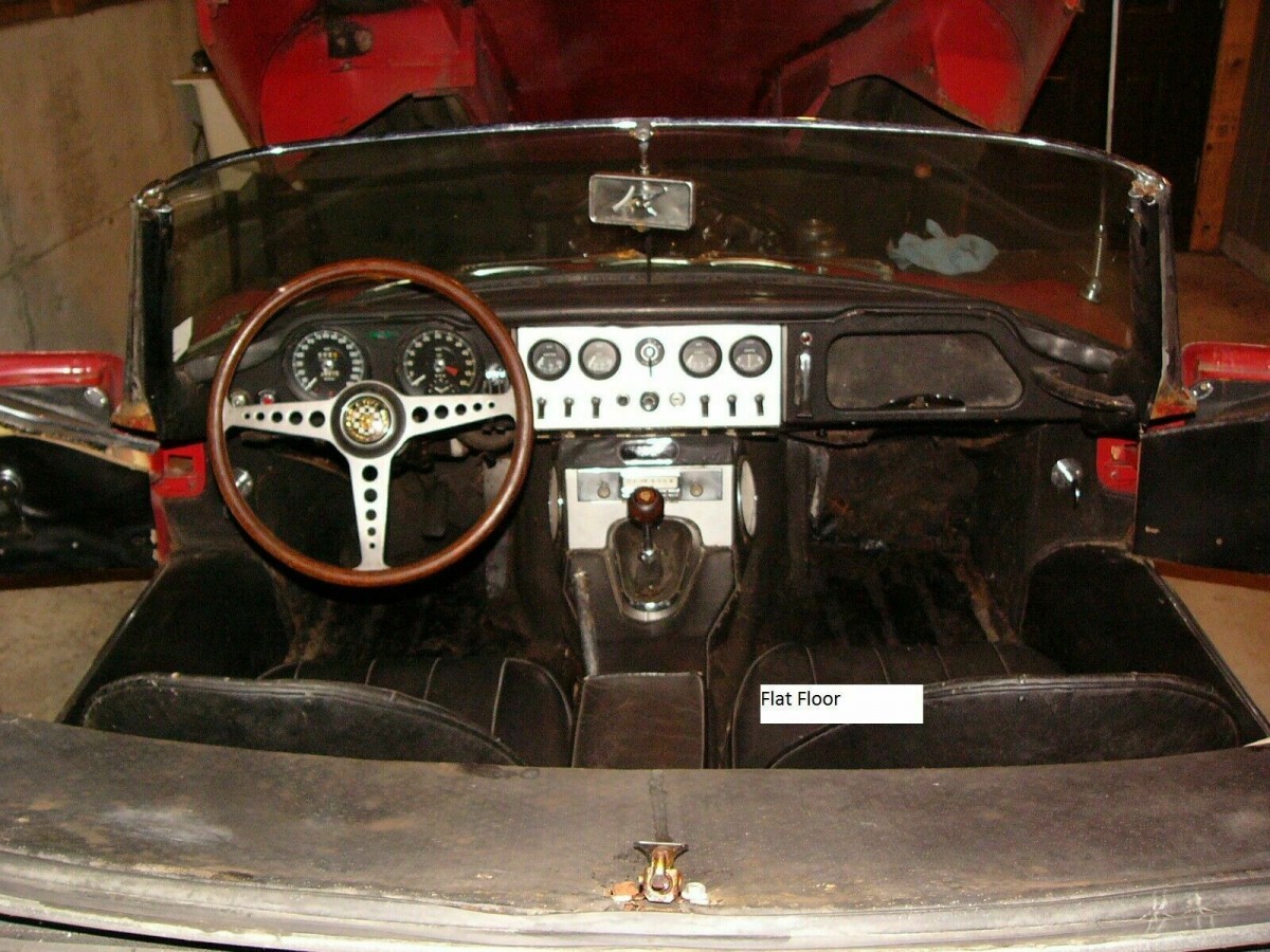 The flat floors are associated with the earliest production Series 1 cars, a design that was later changed to allow for more headroom for taller drivers. I had thought these early Series 1s also had external hood latches but they’re not visible here; the seller notes that it does have welded-in hood louvers and that it was likely replaced in Canada. Paint is said to be original.