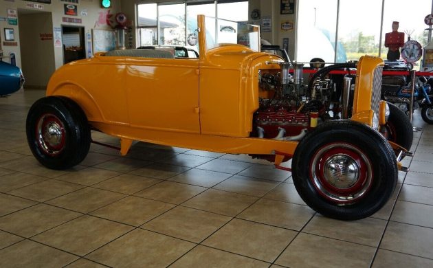 Ford was in a difficult position during the late 1920s. The Model T was still selling in significant numbers, but its competitors were closing the gap with more modern and user-friendly cars. Henry Ford resisted the concept of a replacement, but finally relented when it became clear that the situation was unsustainable. The Model A was a risk, but it proved to be one worth taking. Sales remained excellent during the 4½ year production run, and the “A” became a firm favorite years later as the base for Hot Rod builds. This Roadster reflects that trend and is a stunning vehicle. The Yellow paint isn’t subtle but is more bright and vibrant than any shade offered by Ford during this period. The builder based it on a genuine Ford steel body, following the traditional path of eliminating items like the bumpers, fenders, and the hood. The result is a distinctive vehicle that presents beautifully, with sparkling paint and arrow-straight panels. The beauty is more than skin-deep because the paint shade extends to the spotless 1932 frame. The windshield is clear, and the Rod sits on Red steel wheels with old-school hubcaps and trim rings.