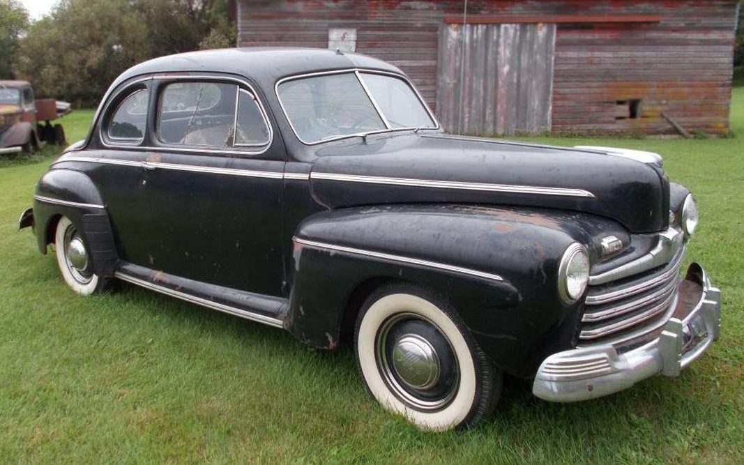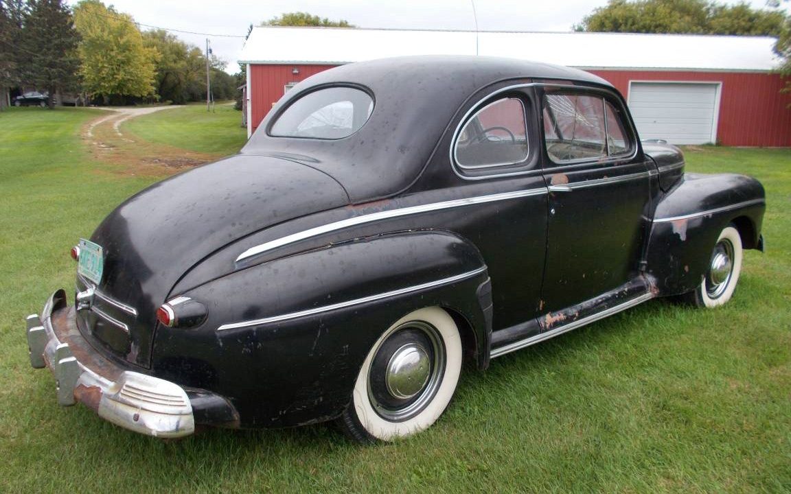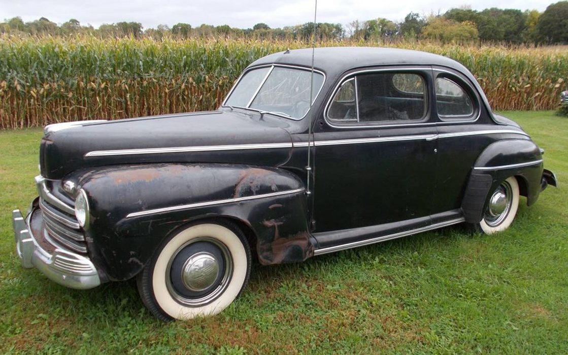 Ok, there’s some metal-massaging to do but I can’t think of a better car to learn on than this ’46 Ford. The design was new for 1941 and then came World War II and US automakers put vehicle production on hold in early-1942 until 1945 when the war ended. The “new” 1946 models were basically the same as the 1942 models with a few styling updates. There were two-door coupes and sedans, four-door sedans and wagons, and a convertible. A Coupe Sedan is a six-passenger car as is the Tudor Sedan, but the Coupe was a three-passenger car, or what I could refer to as a business coupe. Some people call this Coupe Sedan body style a Club Coupe.