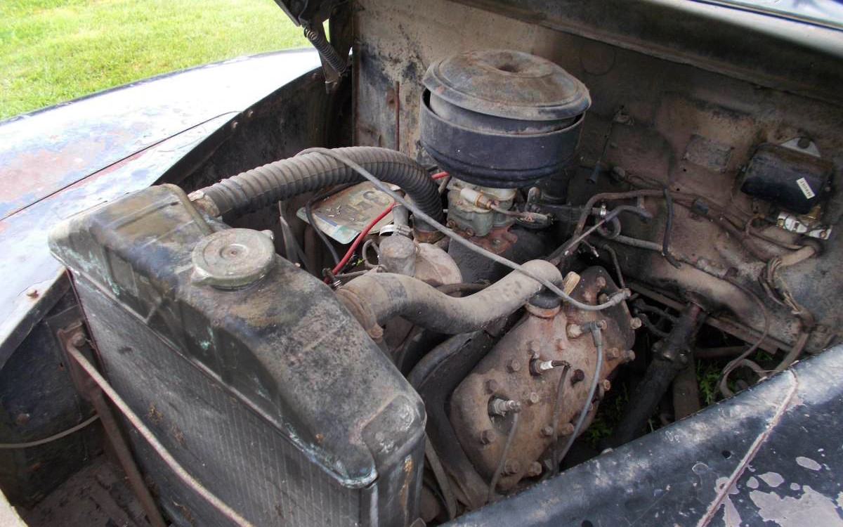 Nice ’46. Let ‘er rip! I sure wouldn’t turn this one down although I would do my best to try to swap out the engine for what’s supposed to be in there. I look under that hood and count only 21 studs, which tells me that it’s a ’37 or a ’38. Plugs look kinda big, like 18mm so I’m going to have to go with a ’37. That’s OK, it all fits, although I’d also swap out the Third Brush generator and install the newer one so it will hook up to the regulator on the firewall (well you could actually run a 3rd brush with a regulator). It’s running the B94 carburetor so that part is correct; the ’37 engine would feature the Stromberg 97 which was introduced that year. The 24 stud engine was a 239 and rated at 100 hp. Obviously someone needed an engine and found this one. Interesting that there was something similar featured in BF a short time ago…