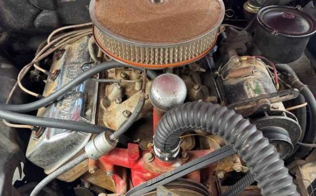 Got a Hemi? You bet, a 280 gross HP 354 CI V8 attached to a pushbutton-activated Powerflite automatic transmission. The seller adds, “Original number match 354 HEMI, push button auto transmission, new exhaust, new spark plugs and wires, fresh oil change, new battery, starter rebuilt. She drives amazingly well – Floats down the road.”