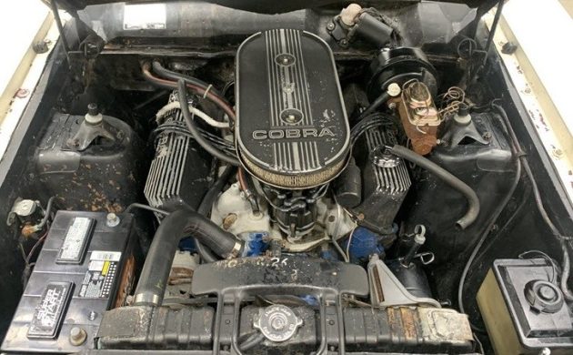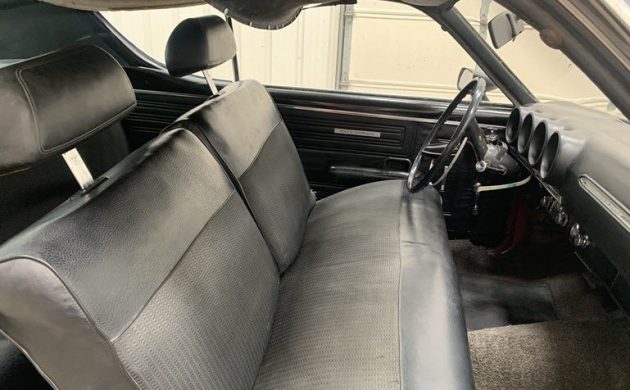 The sole engine choice here was a 428 Cobra Jet, which featured a Holley 4-barrel on top. With a factory horsepower rating of 335, the CJ also offered plenty of low-end torque, and it’s a huge positive that this is claimed to be the numbers-matching component. Beyond that, the only other information provided is that the large powerplant will still rotate and that it has been cleaned and oiled. No word at all on the state of the C6 automatic transmission.