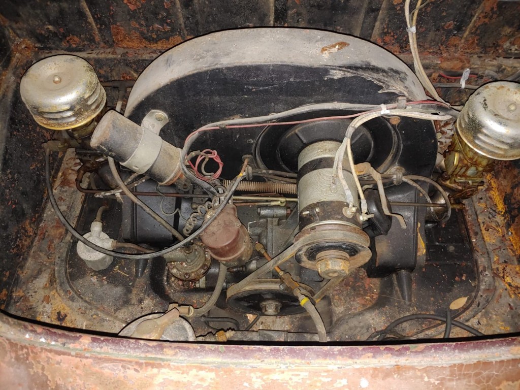 judging by the fuel pump position, looks like a derivative of the 25 or 36 hp VW engine. Would need a good inspection due to the lousy pics. Once again, shame to see a beauty like this get in this condition.