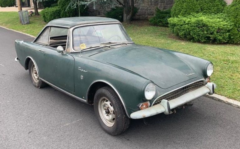 The interior is a bit more than just road-weary. The carpet, dash pad and seat upholstery are shot and the door cards aren’t far behind. The instrument panel appears to be mostly intact with gauges and switchgear where they are supposed to be – that’s always a good sign, though there is something missing far right near the glove box opening. I would suggest that prospective buyers lift the carpet and check out the floors. I visited the Gullwing Motors website in-depth hoping to find a bit more on this car but it isn’t listed that I could find. They have some spectacular cars in phenomenal condition cataloged, this Sunbeam must be buried in their scratch and dent, bargain-basement department.