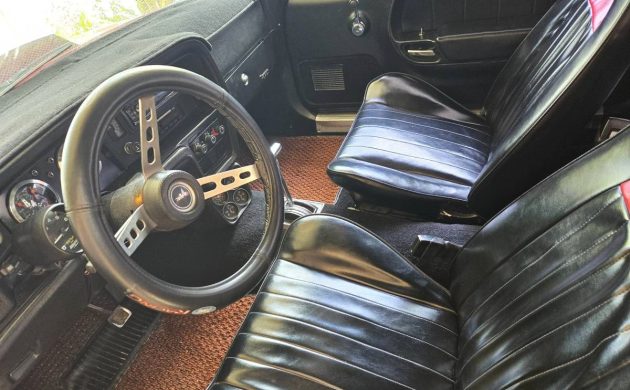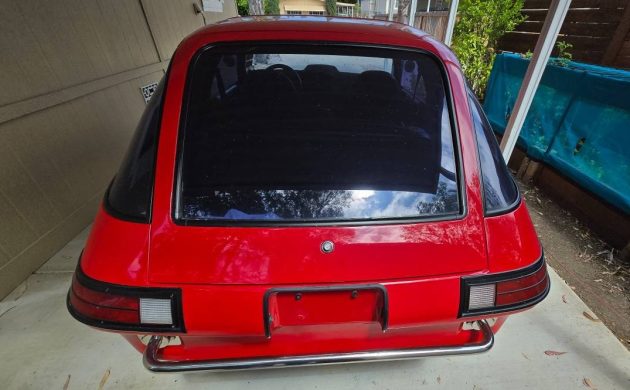 It’s hard to spot in the photos, but the seller reports some body rust, specifically in the rear hatch and lower rocker areas. Fortunately, it’s already said to be a solid driver, but the next owner will need to address this if they want it perfect. The red paint still presents well, and the hood was modified out of necessity to clear the carb. The blacked-out trim is also a catchy touch, but I’m not so sure about the bumpers, as they sort of remind me of the safety bars next to the bathtubs in our house.