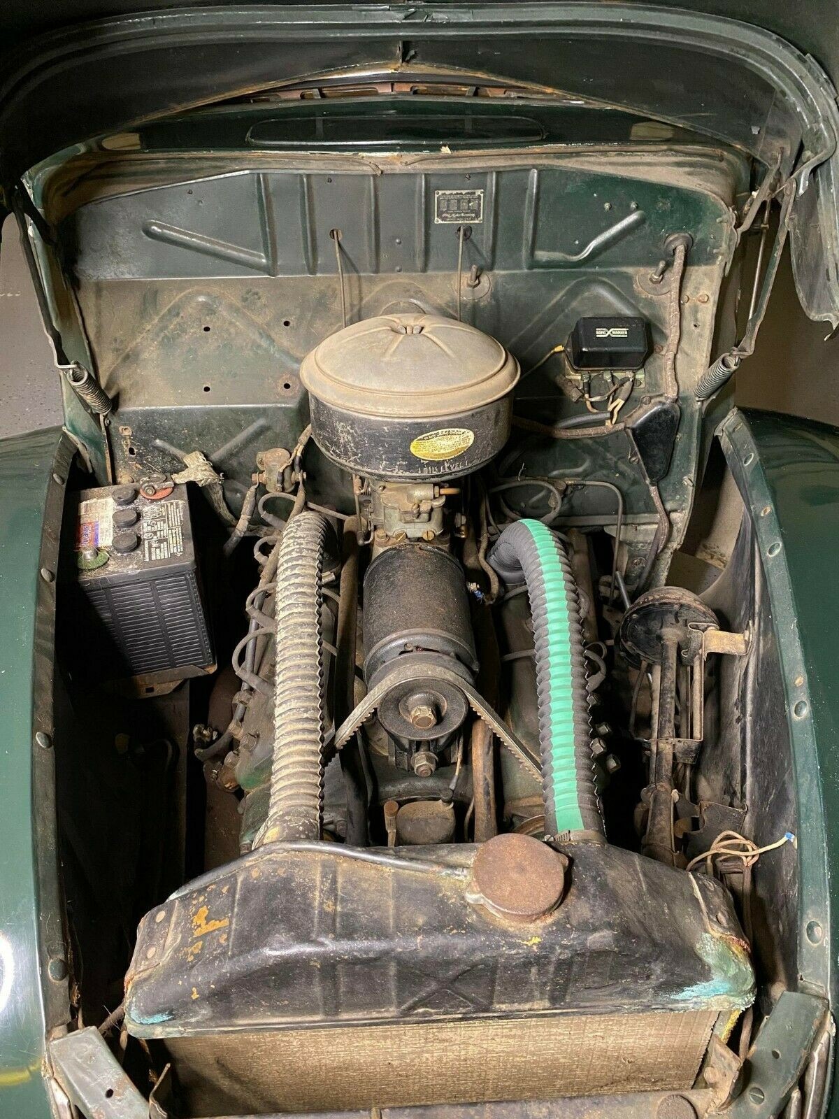 I wish we knew more about this car’s history, what it’s been up to the past 83 years, how it survived, and how long the current seller has owned it. The seller doesn’t share much but states that the Ford has been “sitting in indoor storage for years and needs some TLC, but the body is in very good shape. It is completely solid front to back including all underbody, frame, floor pans, etc., with no rust issues.” That appears to be a pretty accurate description and the seller also mentions that the glass is clear and free of cracks and all doors, the hood, and trunk opens and closes correctly as well as the cool crank out windshield (Ford called it “Clear-Vision Ventilation”). The running boards are worn but the seller claims they’re solid and new rubber is included along with a box of “spare parts.”