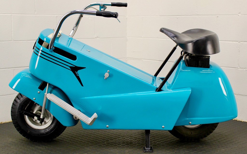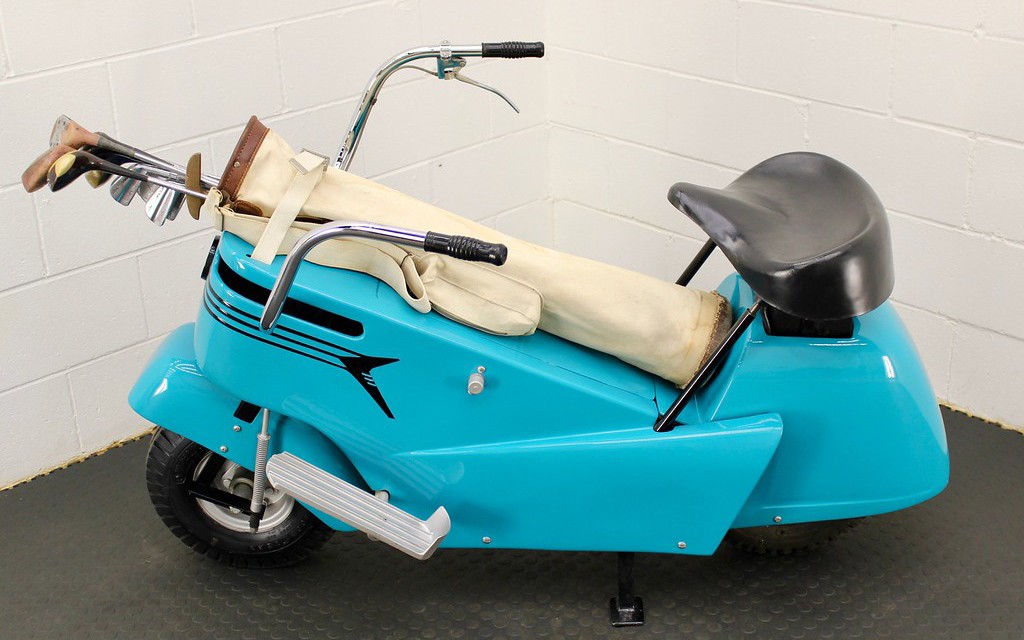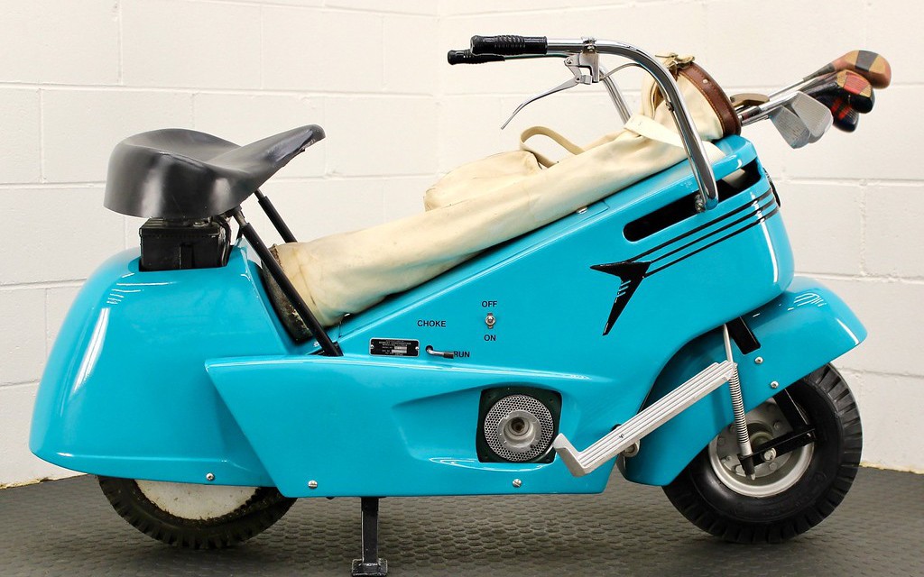 Pretty tough to stump the “King”, but for Scotty to not ever “see one”, well, I don’t know how to finish that statement. This just proves, just about anything made has at least a slim chance of catching on. I’d have to think by the 18th hole, golfers are pretty potzed, and would need the training wheels. I read, it would take a Bob Hope to own one, as they cost $398 bucks, or $3500 today. Cool find, and a place I’d least expect a scooter, a golf course. Apparently, it has no connection to the Bobcat skid steers.