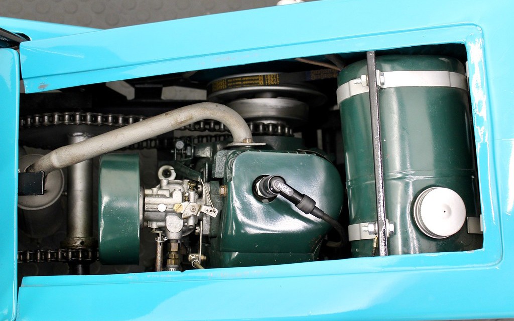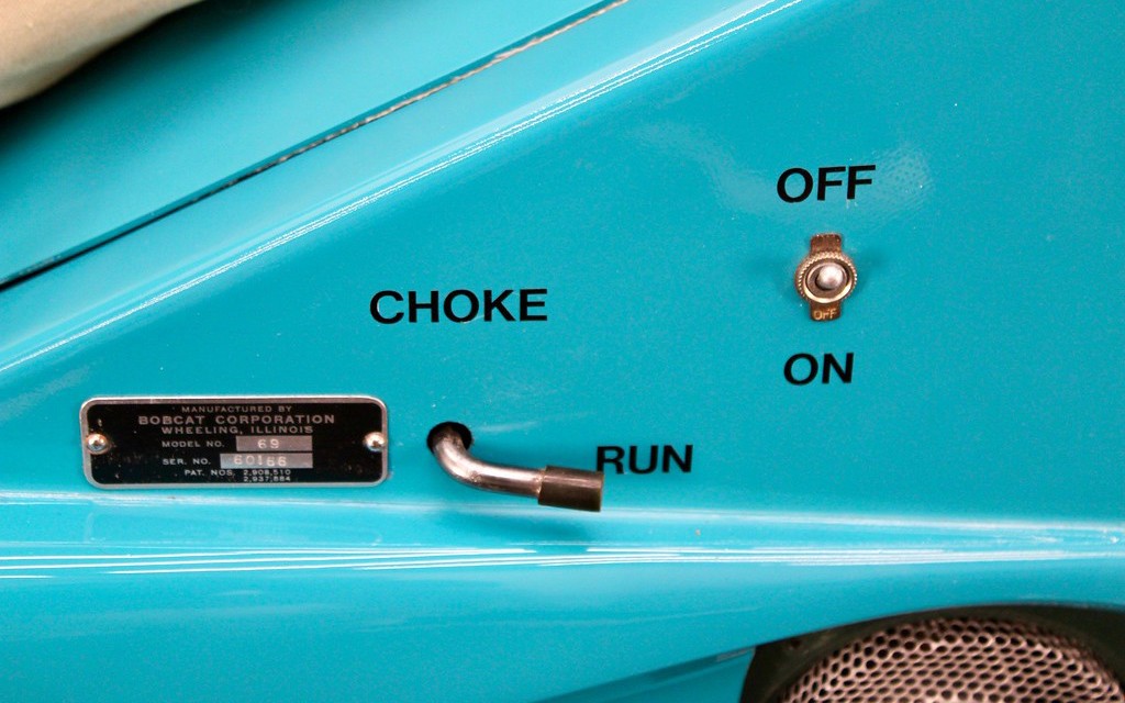 There were four models with four colors, and sticking with that theme, they all had a four-horse, four-cycle engine. One version had a rope-pull start and one had an electric start as this one has. They reportedly had optional “training wheels” or outrigger wheels, so a person could use it more casually like a regular golf cart. And I don’t necessarily mean that it’s easier to drink while driving your golf cart around the course, but you can draw your own conclusions on that. Have any of you seen a Bobcat Compact Golf Scooter?