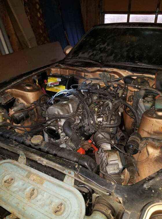 Here’s one of the older photos that shows the Z with the can’t-miss-it black-over-gold paint job that the 10th-anniversary cars came with. The hood is removed and another old photo scan shows the engine removed and on a stand, looking quite fresh. It would seem an owner at one time tore this Datsun down and gave it a proper refresh, but no details are offered as to whether the original inline-six engine was rebuilt and then parked shortly after. Did a mistake in the rebuild cause the freshened-up motor to fail, or did the owner simply grow too old, too soon to enjoy the fruits of his labor? Hard to say, but it does seem like the Datsun hasn’t moved much since the engine was dropped back in.