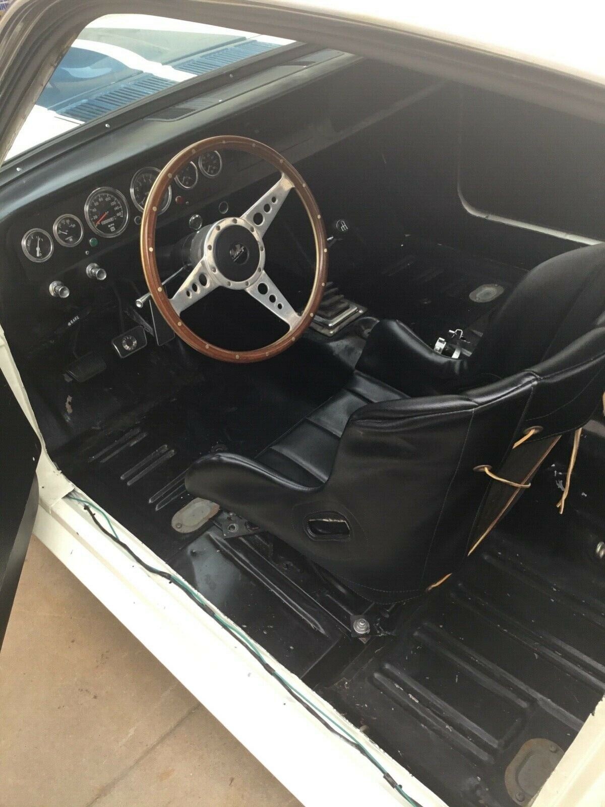 From the description I take it as a race car pure and simple. Lots of effort has been made to keep it track oriented, no sound deadening, delete plates, lightweight doors and hood, relocated battery, racing fuel cell, modded K code 289, cooling ducts for the brakes, one and only one seat……it goes on and on. Looks cool with the side windows covered in aluminum, 8 InchTorque thrust d wheels always look sharp on these older cars.