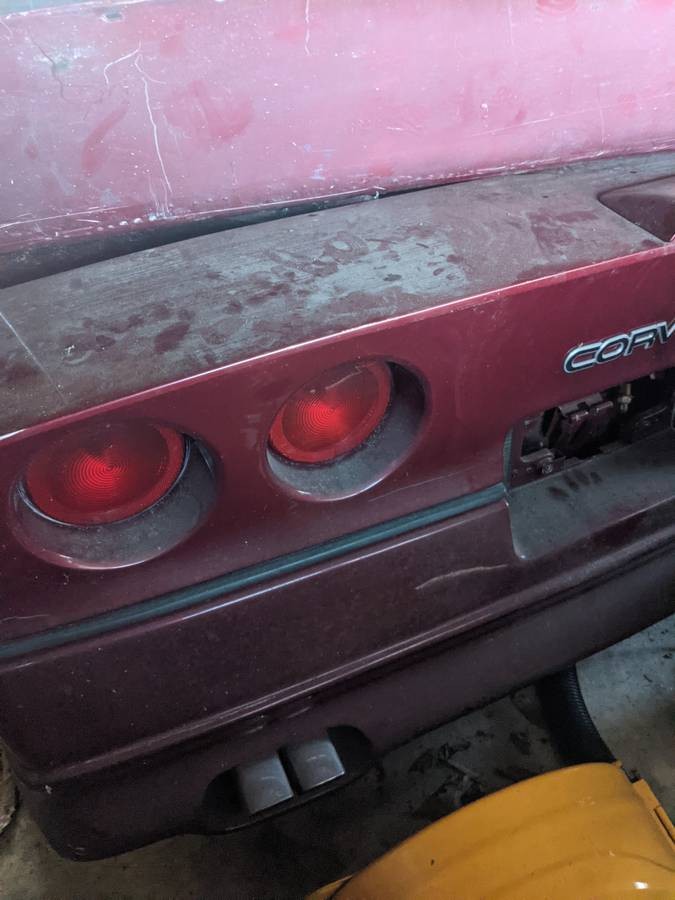 What do we have here? It looks like this Corvette received a custom hood treatment at one point in time, and a previous owner began either repairing the headlights or replacing them entirely with, perhaps, fixed units to give the entire nose panel an overall refresh and more of a show-car theme. The top photo shows what looks like a pair of custom side skirts poking out underneath the door, so the evidence begins to pile up that this Corvette was indeed someone’s passion project back in the day, but the million-dollar question still lingers: where, and why, did they stop?