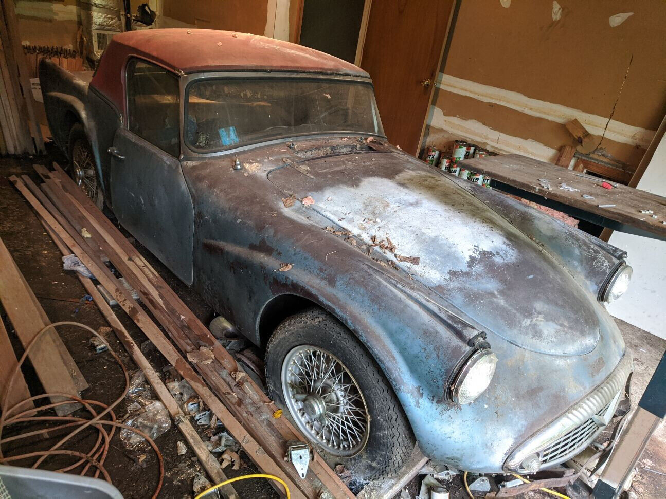 Now, here’s a curious photo: a pair of bucket that seats that look like they’ve been recently reupholstered. This may suggest that the Daimler was under a restoration of sorts before the project hit a wall, or an owner lost interest. The seller doesn’t elaborate as to whether he found these in the car or in the garage, but it bodes well for potentially finding other useful spares in its hiding place. The price seems acceptable for an unusual sports car like this; do you think $9K is a fair ask for a project?