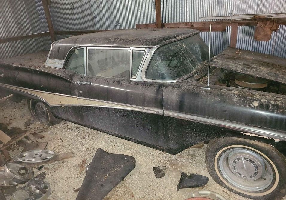 Imagine buying a piece of property and finding an old car tucked away inside a shed. That’s what happened here, only the old auto turned out to be a 1958 Ford Fairlane 500 Skyliner, aka retractable hardtop. The seller doesn’t know much about the car and may not have decided whether he wants to sell it. In his words, “I’m looking to do something with it.” Located in O’Fallon, Missouri, the seller has posted the car here on Facebook Marketplace for $1 and could be just testing the waters. Thanks for the tip on this one, Barn Finder Snotty.
