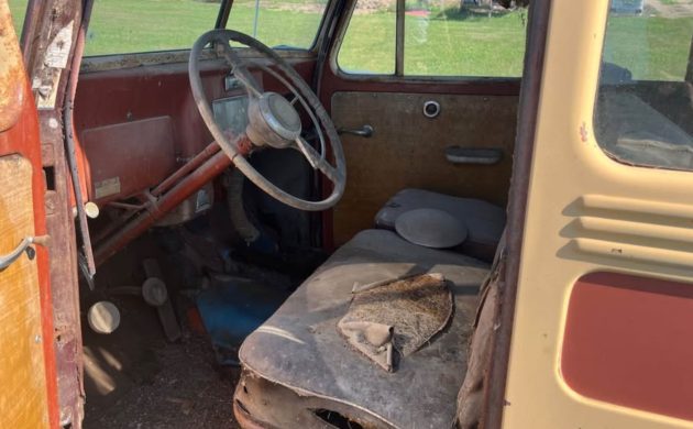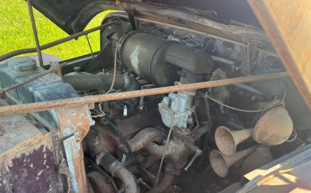 Depending what’s underneath, this could be a fun one to redo, although all indications are that it’s 2WD only. The 3 speed on the column would be entirely entertaining in and of itself, and coupled with the 4 pistons singing lazily along it be a fun one to hang your Desert Water Bag in front of the radiator for a ride on an old 2 lane for a weekend outing.