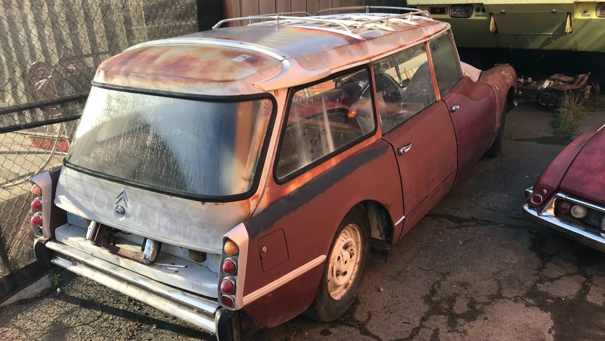 Based on the tail end of another DS in the photos, it’s safe to say the seller is at least a Citroen enthusiast. When it comes to values, the later SM seems to carry a high pricetag in most any condition, provided it’s not a completely lost cause, whereas the DS can be had cheaply even in running/driving project car form. This DS “Break,” or estate, looks to have a solid body with sun-beaten paint. The likely impossible-to-replace rear glass looks good as do the taillight lenses.