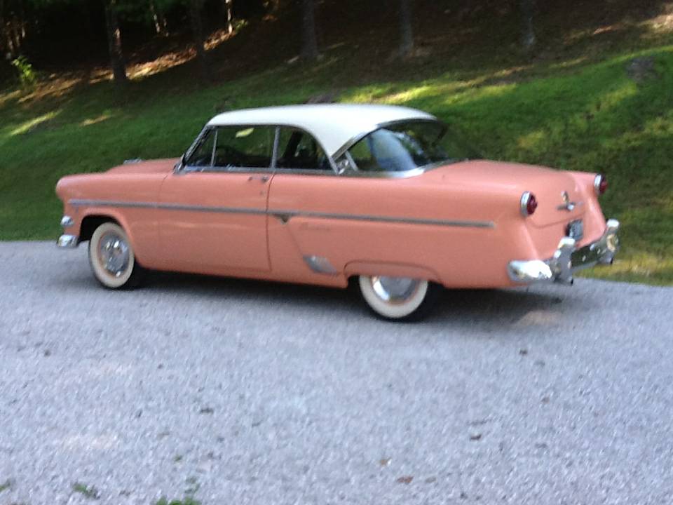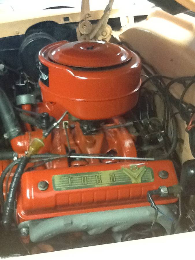 It looks like the restorer got 55 exhaust manifolds in order to have duals. The first factory duals from Ford were in 55 on the Fairlane, no duals at all in 54, which is why they had the weird crossover pipe at the front of the engine. In 55 they came out with a Y pipe under the car. Back in the 50’s you could tell a 6 from an 8 from the rear by the side that the tail pipe was on, 6 on the left and 8 on the right if I recall correctly. Of course much spelled V8 unless, like my friend Kenny M, you got a split manifold for your 6. His was a 51 Chevy convertible and sounded like a Jag.