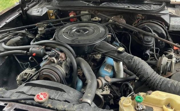Lacksidasial may be one way to describe the action in this Chrysler’s engine room where a 120 net HP 5.2 liter (318 CI) V8 engine is holding court. The 318 is as tried and true as they come but concerns over fuel economy and mandated emission control standards whittled down the power band. The seller suggests, “Runs and drives as new“. A TorqueFlite three-speed automatic transmission makes the rear-wheel connection.