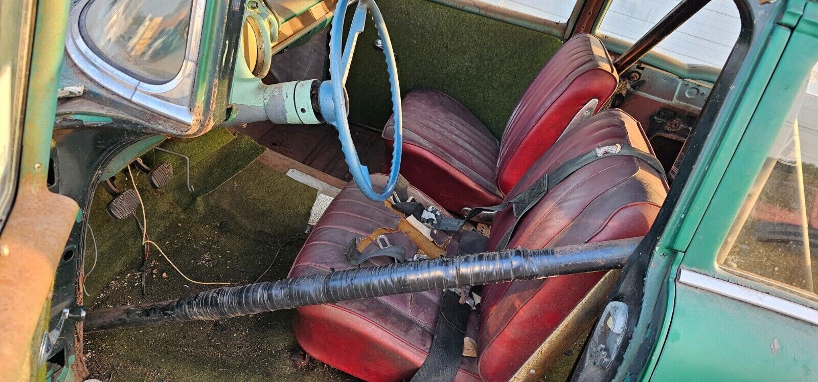 At first glance, this looks like a doable project. And itt got a name. But upon closer inspection, not so much. I foresee a Blasphemi type restoration where the cool body (even as a 4 door) would be put on a modern drag chassis. Its a wonder it even rolled as the rear tires are wedged against the leaf springs. The outdoor carpet interior panels are an original idea…
