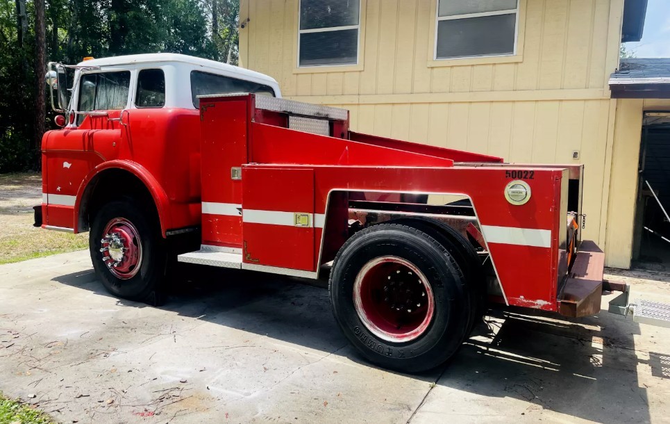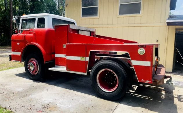 We don’t know what possessed the seller or a prior owner to make this conversion happen. But it must have turned out okay as the thing will tow just about anything up to 30,000 lbs. It appears that all the key fire apparatus has been removed, so it could be an attention-getter in the tow truck business. The transporter has less than 43,000 miles, which is not a lot considering that many of its trips back in the day would have been short hops (unless out into the boonies).