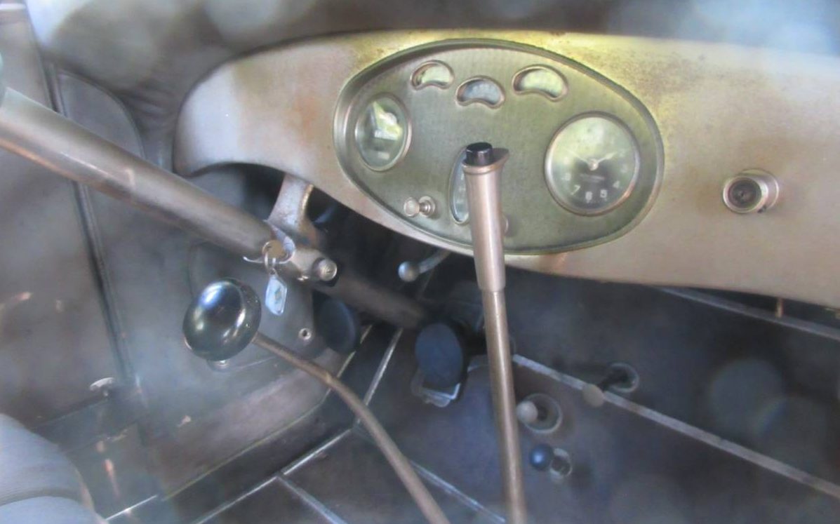The instrument panel is simple and functional as was typical in the early ’30s. Dashboards and instrument panels didn’t start to become works of art until later in the decade. There seems to be a light patina of rust here, surrounding the gauge pod, but nothing too serious in nature.