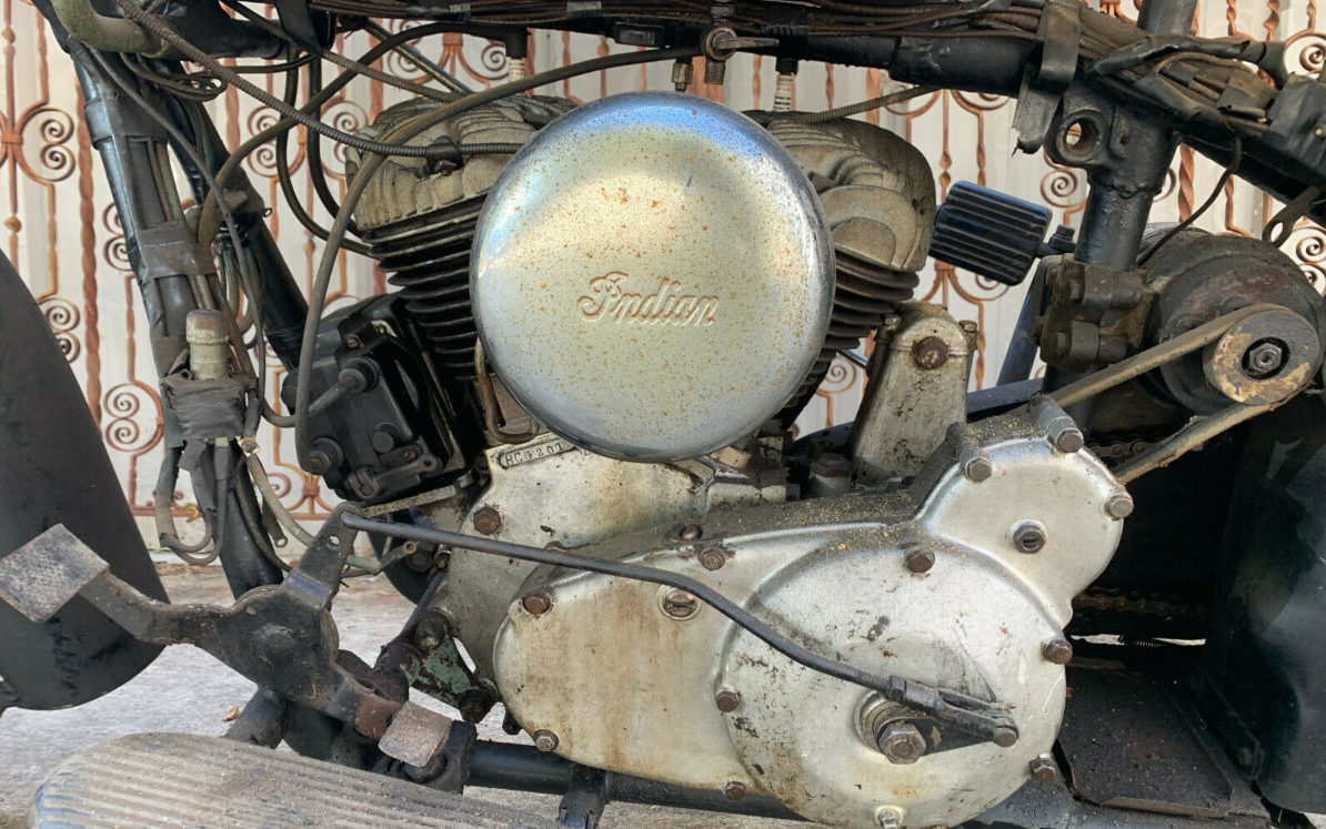 The overall condition shows as 1937-era original. The seller suggests that this Scout while having a good look, would make a great project for conversion to a full-on Chief or a 750 CC Scout bobber TROG. The good look that it has, however, along with its originality and completeness, makes it a great candidate for preservation as is and probably wouldn’t require much effort to return to road-worthiness. I have to say that the left-side mounted, take-your-hands-off-of-the-handlebars, gear shifter would make me a bit nervous. The seller states that the serial number is low, indicating it is an early ’37 build – not certain if that is a value enhancer or not. Unfortunately, this 18 HP Indian engine comes with the old, “ran when parked” saw and it will not start as it sits. The seller thinks it has a magneto problem and advises that the engine does turn over as well as having no broken cooling fins. The bike rolls easily on its own so that’s positive too.