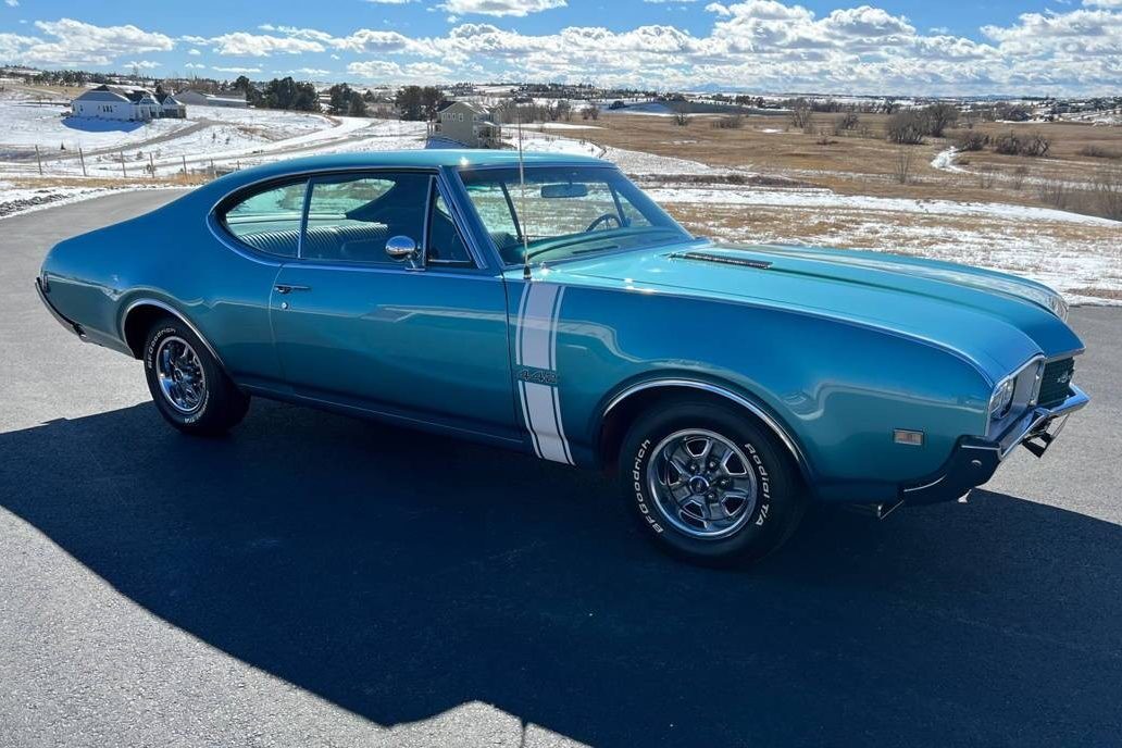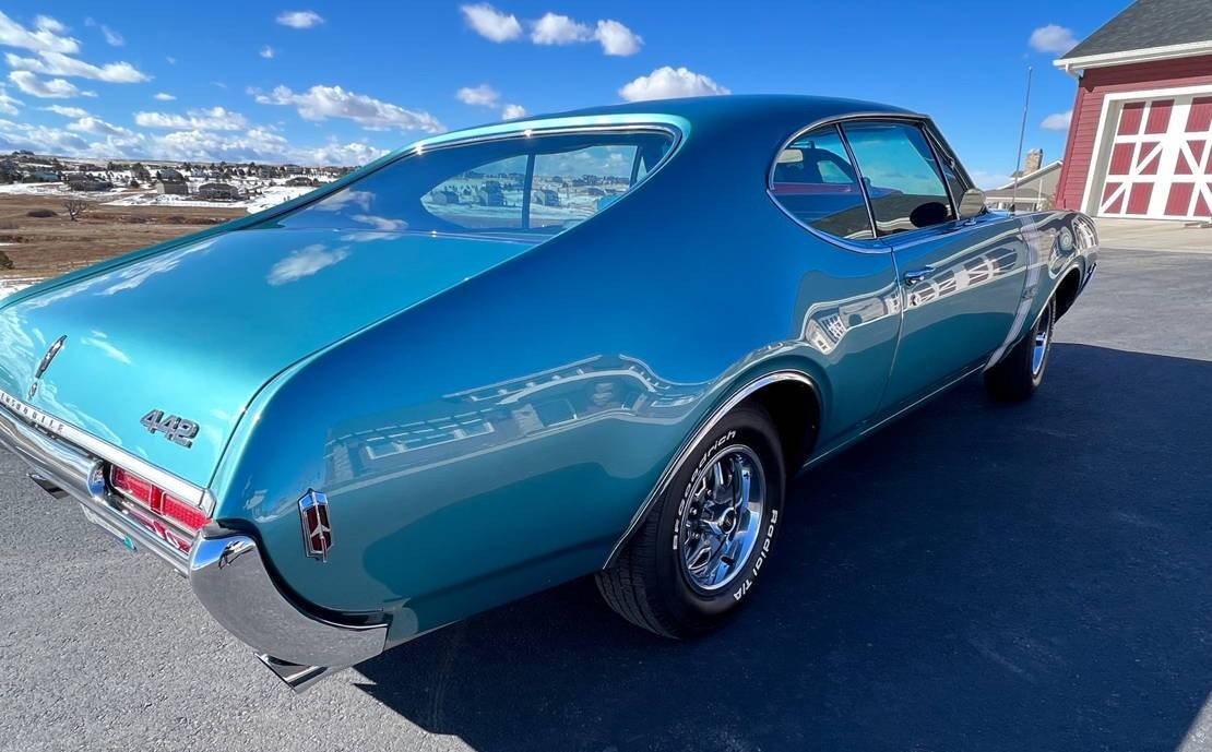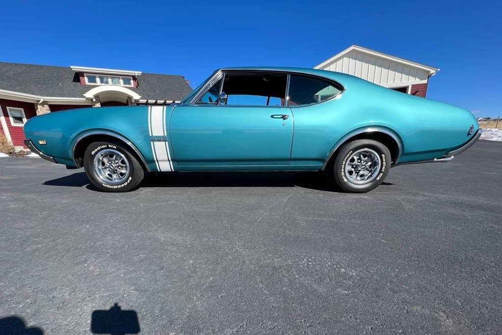 68 442 was my first car in high school. Red with white vinyl roof, 4 spd with 3.91 12 bolt posi rear end. Car was a sleeper with dog dish hub caps . No power steering, a/c, or brakes. Drum brakes all around made it hard to stop. High 13 quarter mile times were pretty normal, and after I put headers on it and a borrowed set of sticks, it ran a mid 12 quarter.
