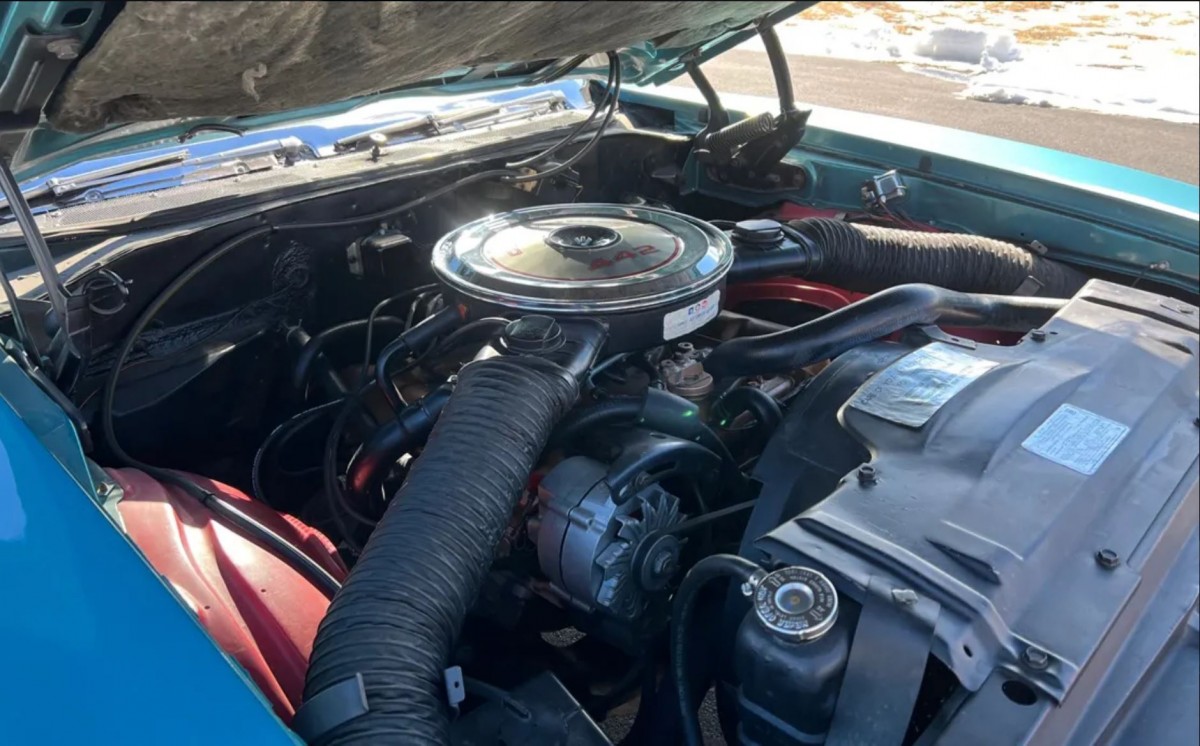 It is hard to find fault with the presentation of this 442. Its Ocean Turquoise paint holds an impressive depth of color and shine, which is hardly surprising when considering this classic’s recent history. It spent some time as a display car at the renowned Volo Auto Museum, and it was during this time that the owner treated it to a repaint in its original shade. Eight years have passed since then, and the paint has held up remarkably well. That tends to indicate that the person completing the work did so to a high standard. The panels are laser straight, but this car’s total lack of rust is the best news. That can be an issue with the 442, so that is an important factor for potential buyers to consider. The chrome shines as beautifully as the paint, the wheels show no evidence of faults or damage, while the glass appears flawless.