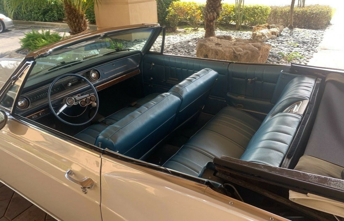 We’re told this Chevy floats down the road effortlessly, almost as if it had never seen any use before. The engine cranks right up and you can shift through all four gears effortlessly. This Impala has a lot of convenience options, like a tinted windshield, back-up lights, remote mirror and a padded dash, and yet it wasn’t ordered as a Super Sport. The seller says everything works as it should, including the like-new power convertible top.