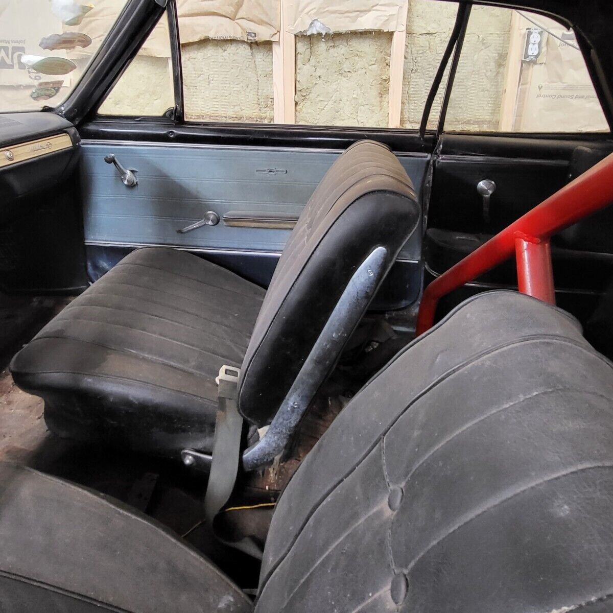 The top is torn. He has the full back seat. There’s rust in the trunk floor. He has six wheels for it: 3 later SS and three steel originals. He believes there’s no outer body panel rust. There’s no exhaust system under the car. He doesn’t know if it’s a factory L79.