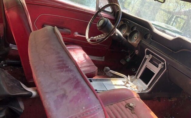From what we gather, the seller of this Ford is a Mustang aficionado as the auto is being sold to fund work on another of the pony cars. There’s no indication how long this convertible has been roughing it outdoors, but some of the time has been spent with a canvas cover over it which may help capture rust underneath. The top is not element-proof, so Mother Nature or some of its furry inhabitants may have paid the vehicle a call.