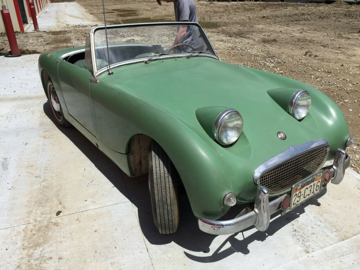 All kidding aside, I actually do have a soft spot for the Bugeye Sprite. It is a distinctive car, and its appearance would have been very different, but for a bit of good old company cost-cutting. The original intention was for those bulbous headlights to fold back into the car’s hood when switched off, very much like the Porsche 928. Last minute cost cutting saw this plan axed, but this decision fell too late to allow for a styling redesign. As a consequence, the car was built with the headlights fixed in the “on” position to save both time and money. It appears that the Sprite has been off the road since 1991, but wherever it was stored must have been a pretty reasonable place, because the car is quite well preserved. Prior to going into storage, the car was a multiple trophy winner and looking around the car, it would seem that a good buff and polish may restore much of its past beauty. One other positive is the fact that this little car doesn’t appear to have any issues with rust, which is always a positive thing when you are dealing with a classic British sports car. The only real defect in the car is this small mark that has some filler in it. Judging by the text in the listing, this has been like this for a number of years, so hopefully, all is solid underneath the filler.