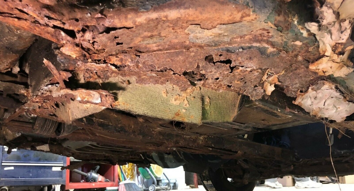 Oh mama – that’s some serious cancer. Of course, floor pan replacement panels are widely available, but there’s still a fair amount of labor needed to set this one right. The engine has been partially disassembled and remains in pieces today, meaning the next owner will undertake a proper engine rebuild (most likely) in addition to reconstructing the floors. Fortunately, the body panels look largely sound.