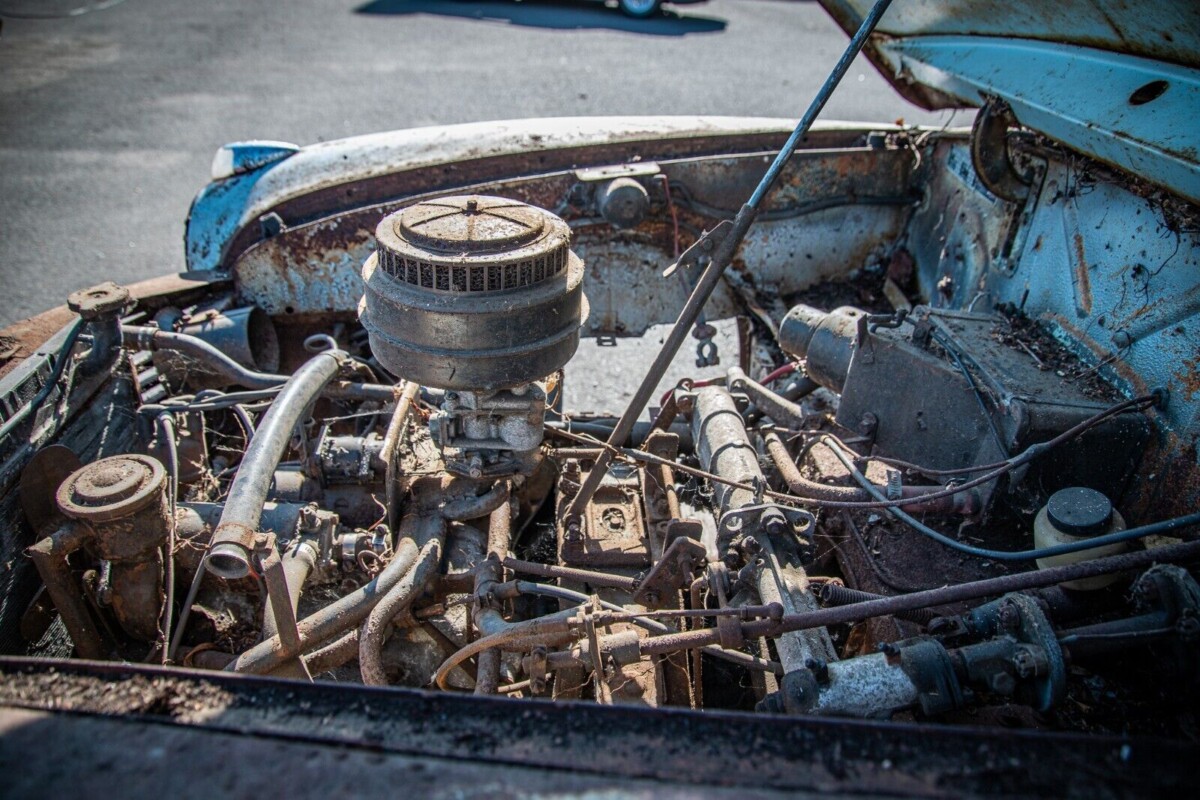 The predecessor to the Goliath 1100 was the 900, which used a two-stroke engine fitted with Bosch fuel injection. But by the time the 1100 came along, customers were clamoring for more power. The new Goliath offered a liquid-cooled, 1094 cc four-cylinder, four-stroke boxer motor with either a single carburetor or rarely, twin carburetors. The single-carb version here would produce about 40 bhp; with a tailwind, top speed was 78 mph. The gearbox was an all-synchromesh, four-speed manual. Unfortunately, the motor here is not going to light up the pavement any time soon. The seller indicates that the Goliath motor was “later used by Subaru” which is a stretch: Subaru happened to use the same configuration but there is no proof that its motors ever came from Borgward.